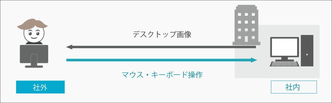 画面転送の技術で社内の自席PCを 「見に行く」だけなので、転送されるデータは画像のみ。これでファイル漏洩の恐れはありません。また、通信データは金融機関でも利用されているAES256方式で暗号化されています。